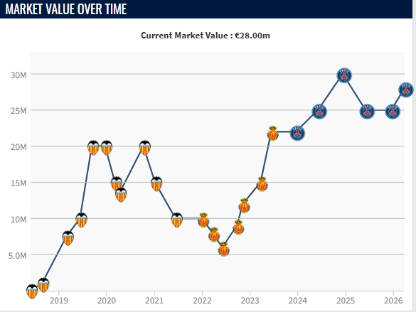03月27日讯 今日德转更新法甲球员身价,效力于巴黎的25岁韩国中场李刚仁身价上涨300万,至2800万欧。